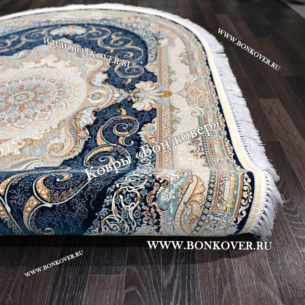 Долго искали смотрели на разных сайтах , в итоге ваш ковер приглянулся больше всего . Доставили в рулоне на следующий день , оплатили при получении . Идеальный вариант , цвет темно синий с переливом - рисунок очень выйгрышно смотрится !