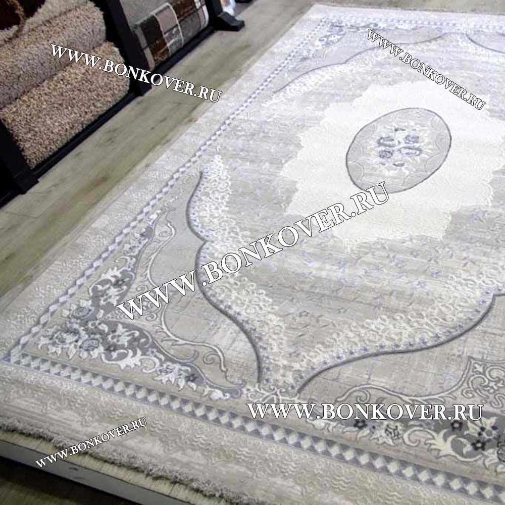 Ковер Турция Для Гостиной Дизайн 96 Белый со Светло-серым