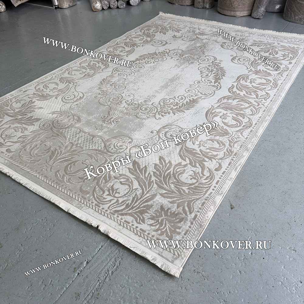 Ковер Турция Для Гостиной Дизайн 95 Белый с Бежевым