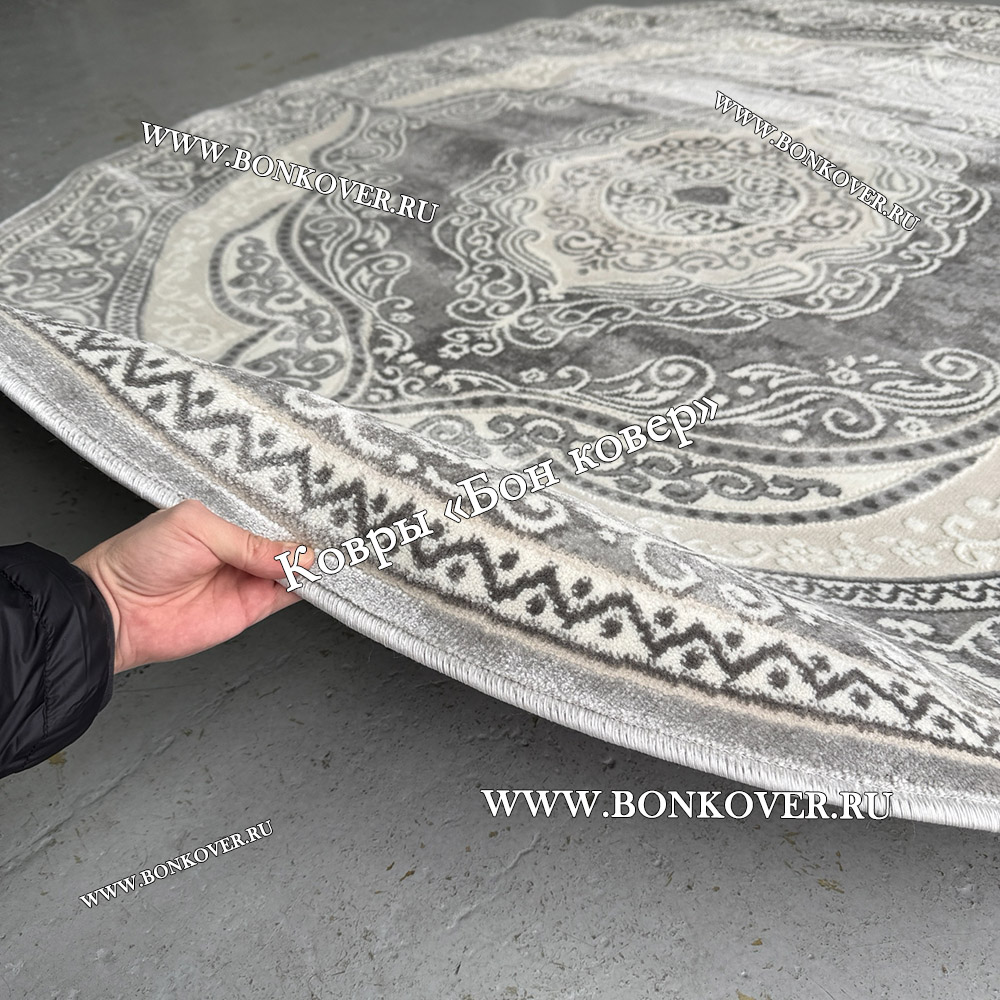 Круглый ковер в гостиную дизайн 01 Серый станет привлекательным дополнением интерьера, оформленного в современном или классическом стиле. Мягкое, но прочное, ковровое изделие обеспечивает тепло- и шумоизоляцию, отличается длительным периодом эксплуатации, пожаробезопасностью, экологичностью и высокой износостойкостью, является отличным противодействием от повышенной влажности в помещении и утеплителем для холодного пола. Благодаря качеству материалов, ковер не деформируется, сохраняет первоначальный вид под тяжестью предметов мебели. За его поверхностью легко ухаживать.